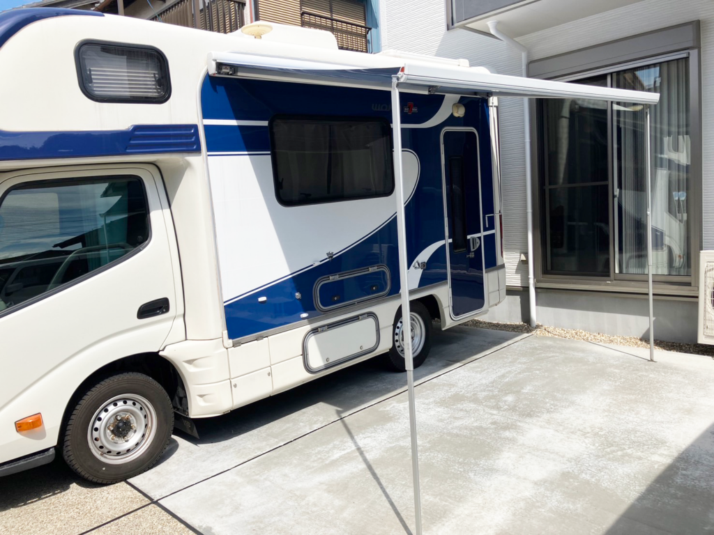 オーニング完備!電動なので役30秒で開閉が可能なので簡単に外でのんびり出来ます。